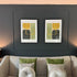 "These 2 set of A2 sized prints come presented in a folio style box. They work best side by side despite their imposing size. This is largely because they are a mirror image of one another so also work best quite centralised in a room. They’re on a fairly thin textured paper so look even neater with a simple mount around them (not necessarily a frame). The colour scheme is around a grey and yellow/gold on a neutral background. The large boxes are visually appealing and look like a centre piece draped on the wall. I like the positive energy vibes that they bring to the room adding that homely feel. Although it’s on the expensive side for the product - they certainly look like a classy statement addition to the home and I’m not against justifying this on that basis!"