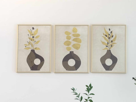 Textured Floral Vase Artwork – Home Decor for Living Room/Bedroom/Hallway/Office – Grey – A3 - Set of 3